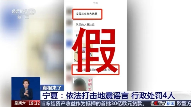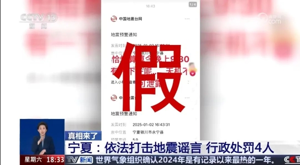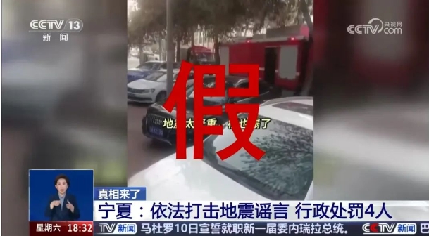 中央電視臺新聞頻道《共同關(guān)注》欄目以《真相來了:這些都是謠言》為題,報道了寧夏銀川市公安機關(guān)打擊處理的4起典型網(wǎng)絡(luò)涉震謠言案件。截至1月11日,監(jiān)測發(fā)現(xiàn)各類謠言及不實信息87條,依法嚴厲快查快處網(wǎng)上涉震造謠傳謠活動,依法給予教育批評53人,治安拘留4人。